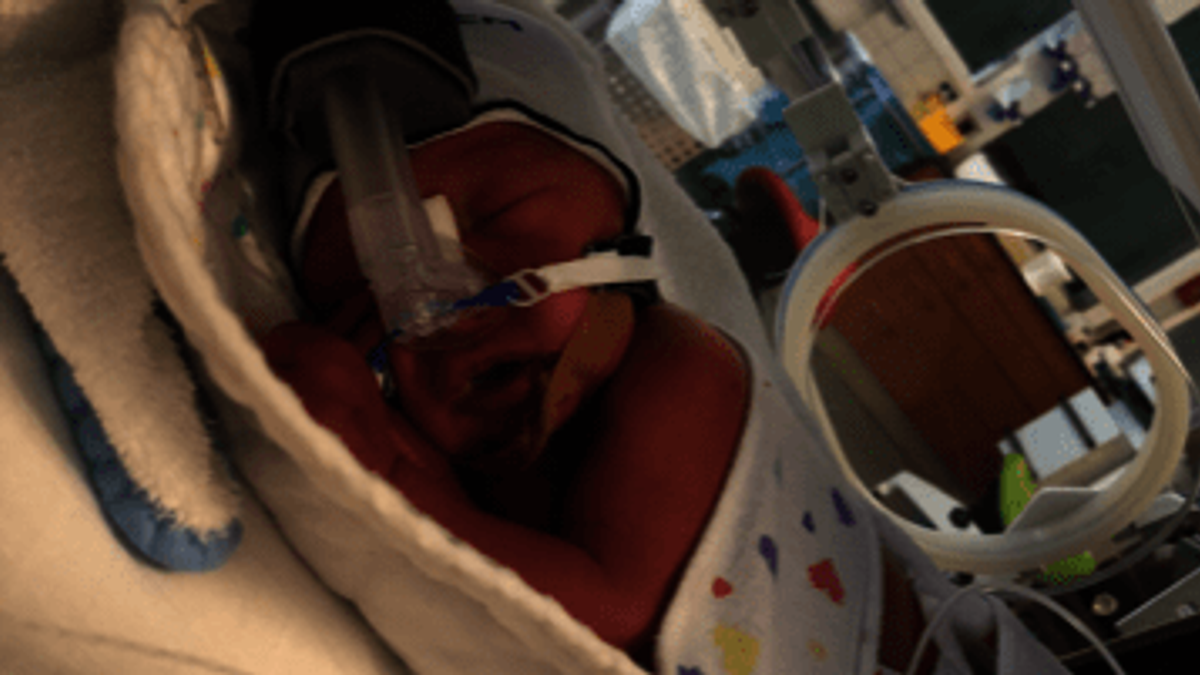 Ik begon heftiger te bloeden. De gynaecoloog kwam kijken en gaf aan dat ik nuchter moest blijven, het zou nu waarschijnlijk te gevaarlijk worden om weer af te wachten of het bloeden vanzelf zou stoppen. Ik had ontzettende buikpijn, wat achteraf weeën bleken te zijn. Na een tijdje stonden er vijf artsen naast mijn bed. Aangezien ik al veel bloed was verloren en de weeën waren door zetten, moest onze kleine man gehaald worden voor het te gevaarlijk voor ons beiden zou worden. Ik werd klaargemaakt voor de keizersnede. Helaas zat mijn ruggenprik niet helemaal goed en moest ik onder narcose. Even later zijn wij de trotse ouders geworden van ons zoontje Luuk. Hij woog 1970 gram en moest gelijk de couveuse in aan de zuurstof, maar wat deed hij het goed! Daar was ons mooie mannetje dan, geboren met 33 weken. Eindelijk kon ik alle spanning langzaam los gaan laten, hij was er! Weliswaar te vroeg, maar we zijn er beiden redelijk goed vanaf gekomen. Twee dagen na de geboorte kreeg ons zoontje een klaplong. Ik mocht hem twee dagen niet uit de couveuse halen. Ik kon alleen maar naar hem staren door het raampje en een hand op zijn hoofdje leggen. Wonderbaarlijk herstelde hij snel en mocht de drain er uit. Ik voelde me raar, ik had niet het gevoel dat het mijn kind was. Maar zocht er verder niet te veel achter. Na vier weken kregen we een gesprek met de kinderarts. Als onze zoon zo door zou gaan mocht hij binnen enkele dagen naar huis. Ik vond het spannend, maar was ook blij dat hij mee naar huis mocht en we niet meer iedere dag drie keer op en neer hoefden naar het ziekenhuis. De dag erna werd ik ‘s avonds laat gebeld door de intensive care unit. Ik zakte bijna in elkaar van spanning, nog nooit eerder hadden ze gebeld. Ze vertelden dat ze Luuk met ademhalingsmoeilijkheden terug in de couveuse moesten leggen. Daar gingen we, in plaats van ons mannetje aan te treffen in het warmtebedje lag hij nu weer aan alle toeters en bellen op de IC in de couveuse. Het moment dat ik hem op mijn borst kreeg knapte er iets in me, ik kreeg een paniekaanval. De artsen vertelden ons dat Luuk waarschijnlijk een virus te pakken had en dat ze er niets aan konden doen. Hij moest het gevecht zelf aan gaan. Gelukkig herstelde hij goed en mocht hij na twee dagen alweer terug naar de medium care. Met mij ging het minder goed, ik was uitgeput en sliep nauwelijks. Alles kwam op mijn vriend terecht. Toen we een aantal dagen later ‘s ochtends binnen kwamen op de medium care kwam de kinderarts naar ons toe. Hij vroeg of we er klaar voor waren? Ik vroeg hem wat hij bedoelde. ‘Nou om jullie zoon mee naar huis te nemen!’ Liever had ik hem nog een nachtje daar gelaten om te kijken of alles echt wel oké ging zonder monitor. Ze verzekerden me dat alles goed zou komen. We zijn naar huis gereden en haalden de Maxi-Cosi op. Dit was het moment dat we ons zoontje mee naar huis kregen.