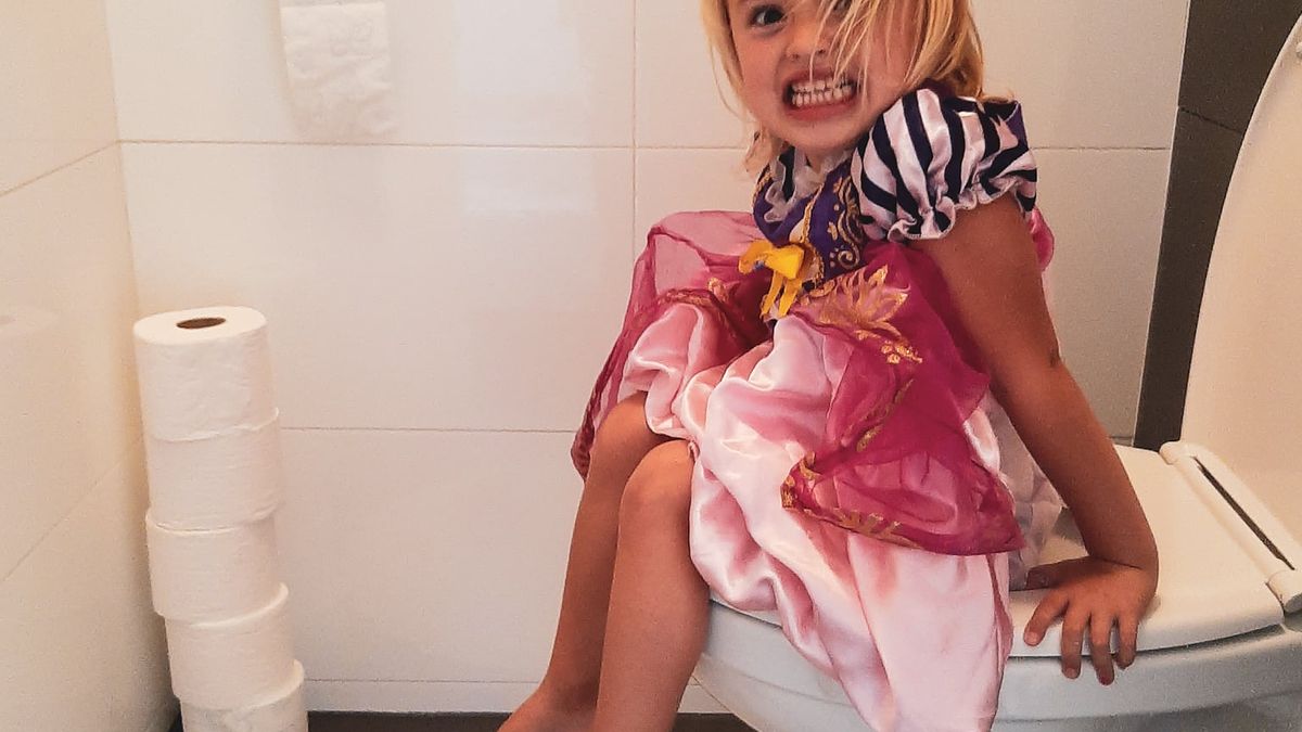 Oké, dit is dus die “angst voor het loslaten” waar je weleens over leest. Maar hoe ga je daar in hemelsnaam mee om? Uiteraard hebben wij als twee debielen staan klappen en blij staan doen naast die wc dat ze het zó goed had gedaan. Maar dit vond zij niet. Ze heeft het nog twee keer met moeite gedaan, dit verliep exact hetzelfde. Totdat ze haar cadeautje in ontvangst kon nemen. Daarna begon het ophouden, tot ze niet meer kon. Tot buikpijn toe en het verliezen van steeds een kleine keutel. Vervolgens nog bloedserieus zeggen dat ze niet hoeft te poepen, uhuh natuurlijk.. “Dan maar gewoon die pot op (letterlijk)”, dachten wij, want ze had het tenslotte drie keer gedaan, niet helemaal probleemloos, maar toch. Je wil op zo’n moment liever geen stap terug doen, als ze over drie maanden vier jaar wordt. Maar dít liep helemaal uit op een fiasco. Krijsend en spartelend richting de wc. Al haar ledematen vlogen alle kanten op én dan zat ze er nog niet eens op. Néé, dit kon écht niet! Ik wil haar zo graag helpen, maar hoe dan?