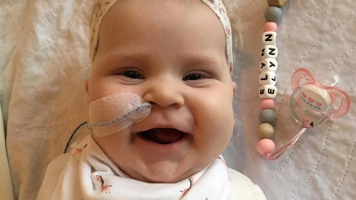 Het is fijn om met z’n allen thuis te zijn, maar toch ook een beetje wennen. Elynn is nog erg moe, we stoppen haar lekker in haar eigen bed en ze valt als een blok in slaap. Niets slaapt beter dan je eigen vertrouwde bedje. De dagen die volgen zijn onrustig. Elynn is nog aan het afkicken van de medicatie die ze op de IC gehad heeft. In het ziekenhuis hebben ze een afbouwschema gebruikt van methadon en lorazepam. We merken dat ze thuis ook nog momenten van onrust heeft die passen bij het afkicken. We doen het rustig aan, zoeken niet te veel prikkels op. Opa’s en oma’s komen wel even langs om te knuffelen. Alles vraagt nog veel energie. Drinken blijft ook thuis moeizaam gaan. Flesjes krijgt ze niet leeg, ze is al snel buiten adem en weigert dan de fles. Ook het verslikken blijft aanhouden. Aan de borst lukt het haar al helemaal niet meer. Ik besluit die strijd overdag op te geven en te blijven kolven. Ik vind het belangrijk om haar wel al het goede van moedermelk mee te geven, zeker na zo’n heftige periode. Alleen in de nachten als ze half slaapt lukt het soms om haar nog een voeding te geven. Zo blijven we nog een tijdje doorgaan. Ze drinkt net genoeg om niet uit te drogen, maar het houdt allemaal niet over. Drinken kost zoveel energie dat ze na 30-40 cc stopt en in slaap valt. Ze oogt dan ook weer benauwd. Ze slaapt ook nog steeds gemiddeld zo’n 18 uur per dag. Ondertussen moet ik wel weer aan het werk en gaat Elynn overdag naar het kinderdagverblijf. Ze is vrolijk, maar ook daar merken ze dat ze anders is dan voor de opname.
