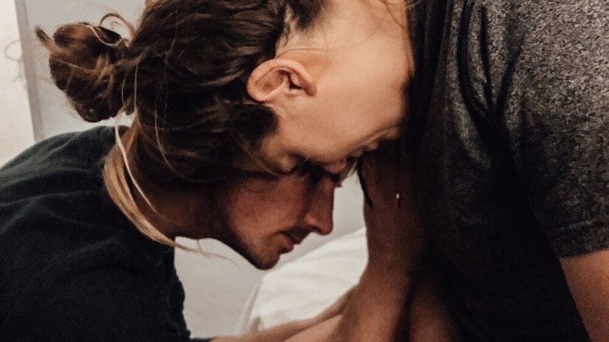 Wel had ik een badmat gekocht om eventueel in bad te kunnen zitten (en misschien bevallen), maar na al zoveel uur thuis gebadderd te hebben, had ik daar in het ziekenhuis totaal geen zin meer in. Ik had nog 1 centimeter weg te puffen en het enige waar mijn behoefte lag was hangen aan Ruub in de meest onmogelijke posities. Uiteindelijk heeft het toch nog even op zich laten wachten, maar rond 20:00 uur was daar dan eindelijk de 10 centimeter ontsluiting en mocht ik rustig aan met de druk meepersen. Wat een verlichting, na 16 uur puffen! Ik begon eerst op bed, maar al vrij snel stelde Iris de baarkruk voor. Ik liet me volledig door haar leiden. De baarkruk beviel me wel. De druk ging omlaag en de zwaartekracht werkte mee. Er kwam nog steeds niet meer uit mij dan mijn hoofd knikken en schudden. Mijn ogen waren al drie uur dicht en ik zat volledig in trance, maar de rustige sfeer met elkaar voelde heel erg fijn. Ondertussen was Ruub nog steeds zo dicht mogelijk bij mij. Dat gaf me kracht. Ik had hem nodig om er doorheen te gaan.